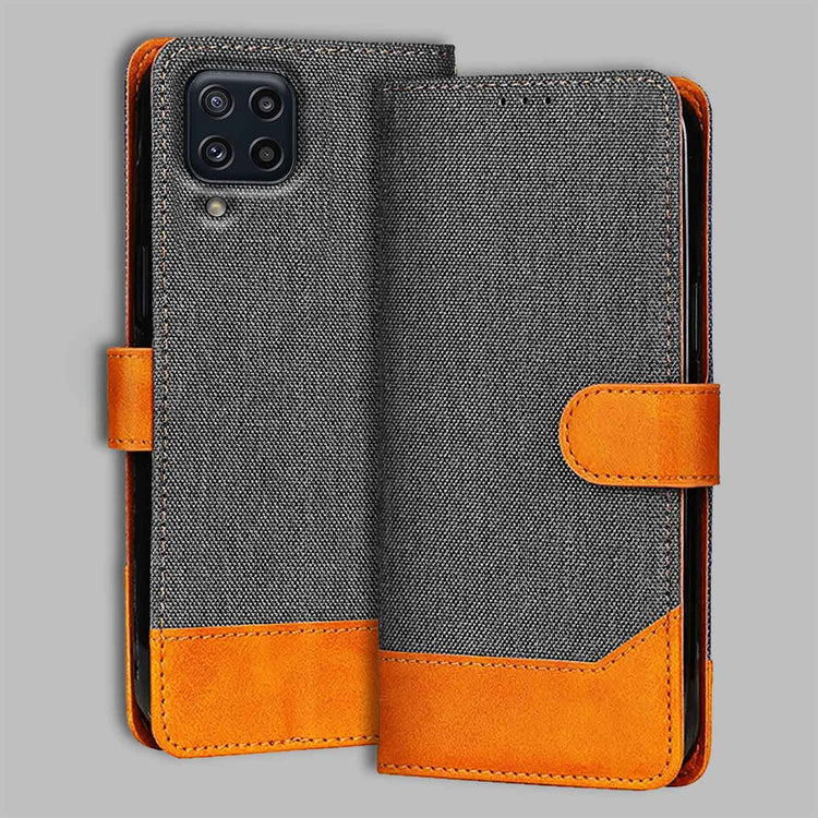 Samsung M32 4G Denim Leather Flip Cover | Dual Color | Sleek & Durable - Grey