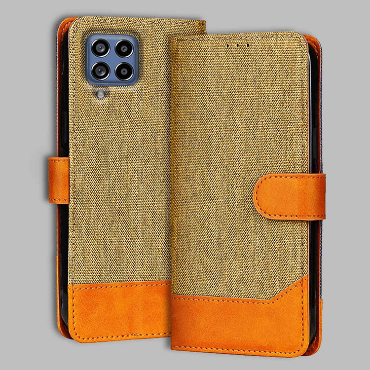 Samsung M53 5G Dual Color Flip Cover | Denim & Leather - Light Brown