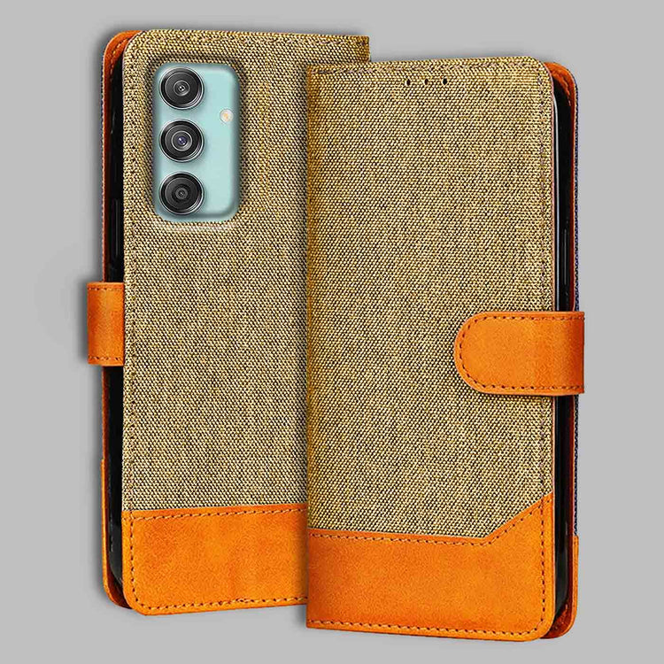 Samsung M55 5G Dual Color Flip Cover | Denim & Leather - Light Brown