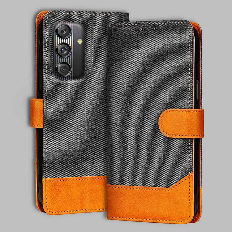 Samsung M55S 5G Dual Color Flip Cover | Denim & Leather - Grey