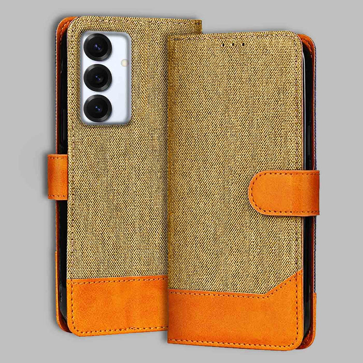 Samsung S25 5G Dual-Tone Denim & Leather Flip Cover - Light Brown