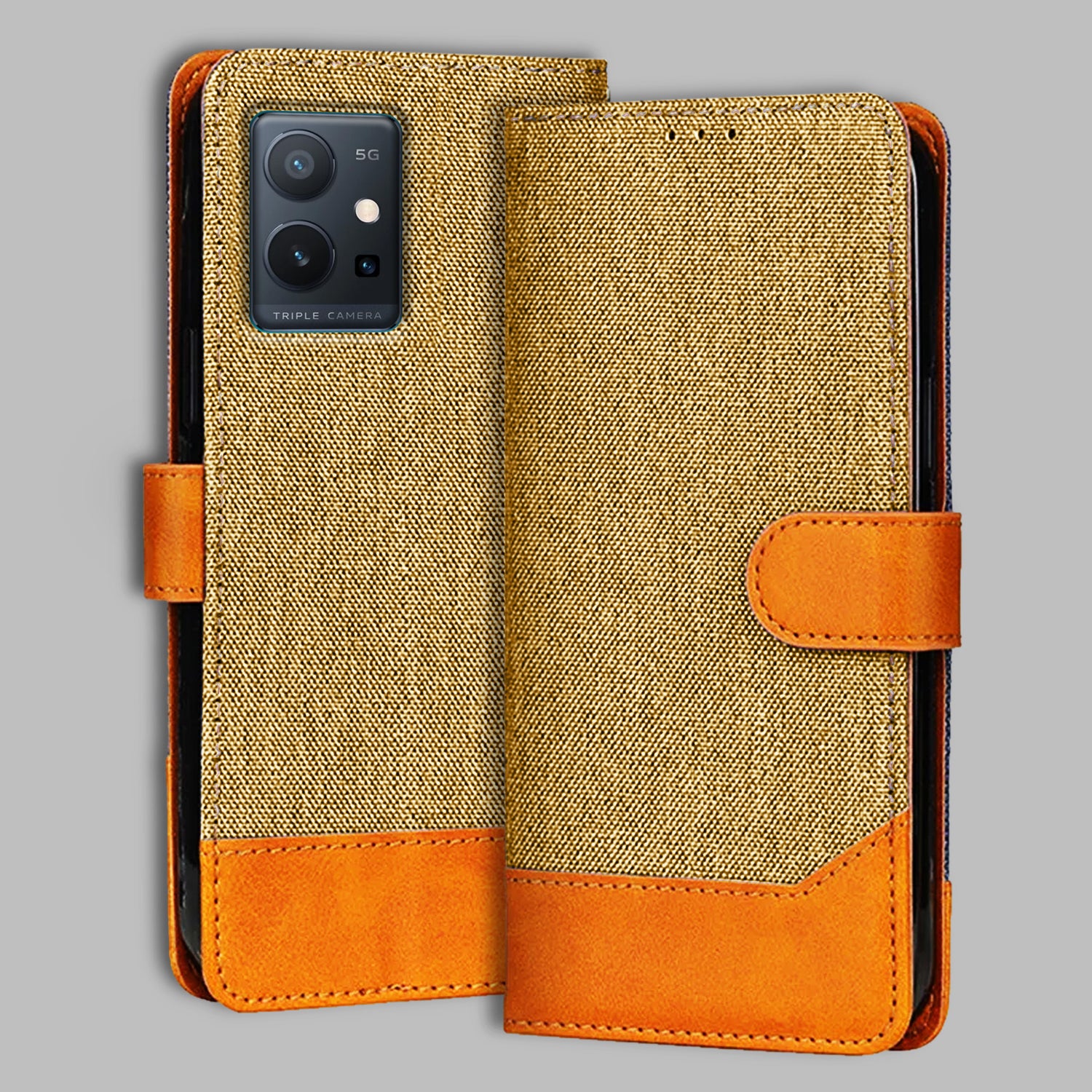 Vivo T1 5G Dual Color Flip Cover | Denim & Leather - Light Brown