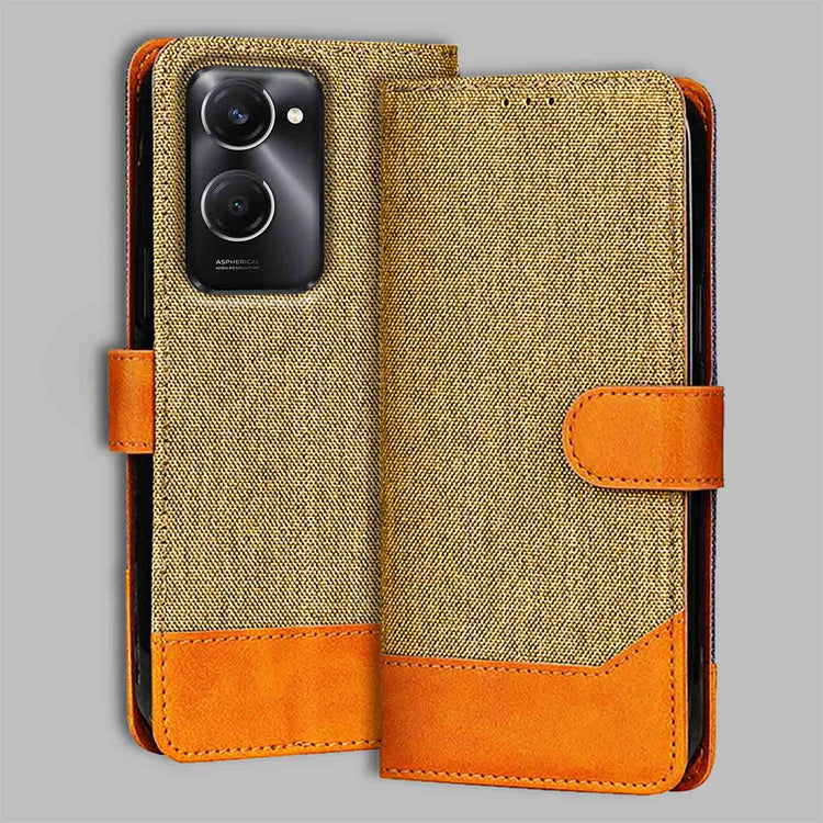 Vivo T3 Lite 5G Dual-Tone Denim & Leather Flip Cover - Light Brown