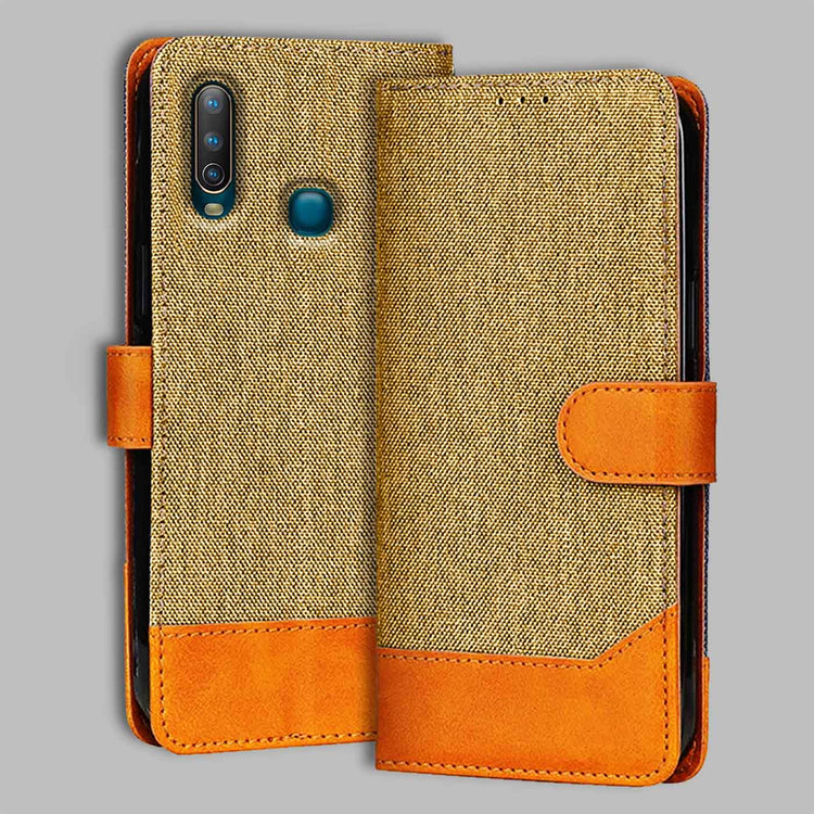 Vivo U10 Dual Color Flip Cover | Denim & Leather - Light Brown