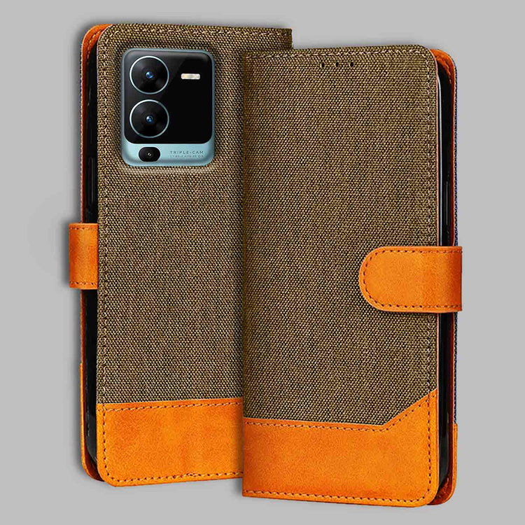 Vivo V25 Pro 5G Dual Color Flip Cover | Denim & Leather - Dark Brown