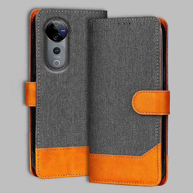 Vivo V40 5G Denim Leather Flip Cover | Dual Color | Sleek & Durable - Grey