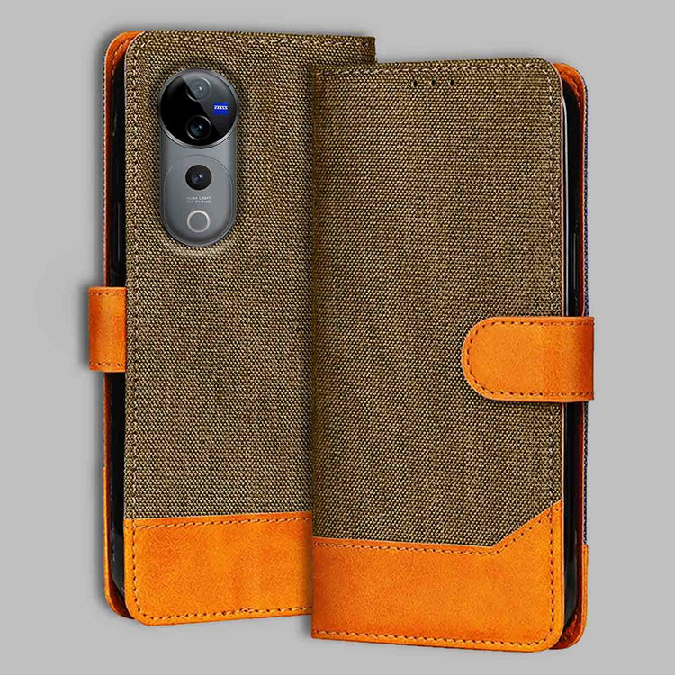 Vivo V40 5G Dual Color Flip Cover | Denim & Leather - Dark Brown
