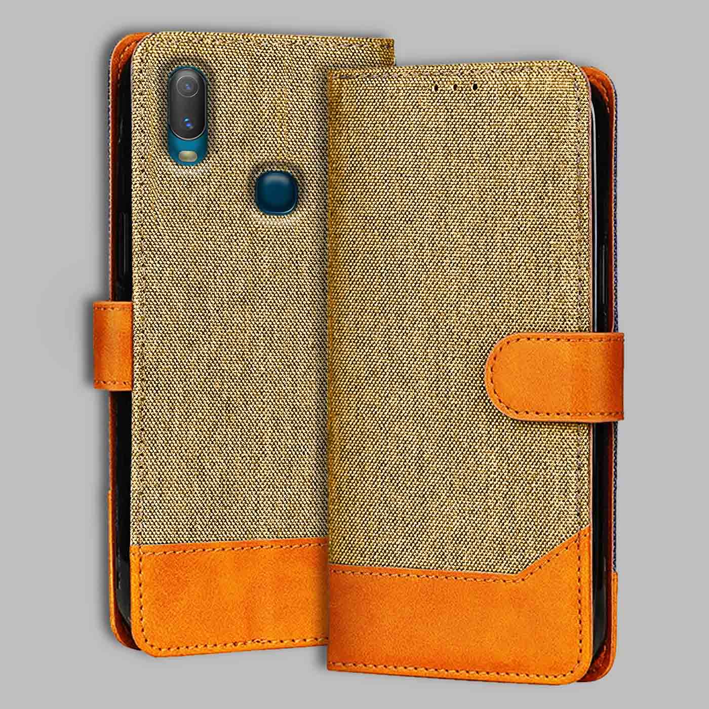 Vivo Y11 Dual Color Flip Cover | Denim & Leather - Light Brown