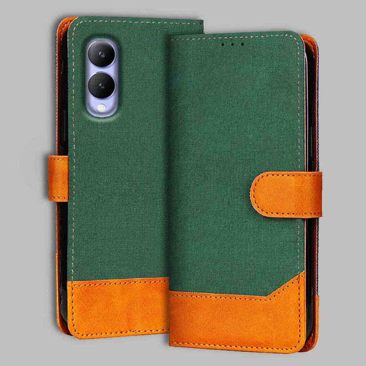 Vivo Y17S Canvas & Suede Flip Cover | Dual Color | Stylish & Durable - Green