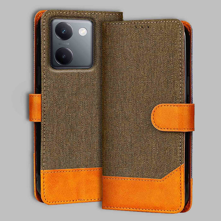 Vivo Y200 Pro Dual Color Flip Cover | Denim & Leather - Dark Brown
