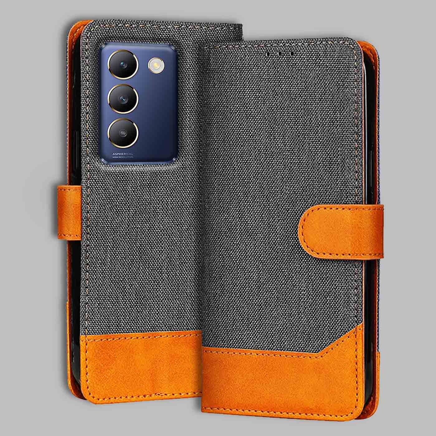Upgrade your Vivo Y200E with this stylish & durable denim and vegan leather flip cover!