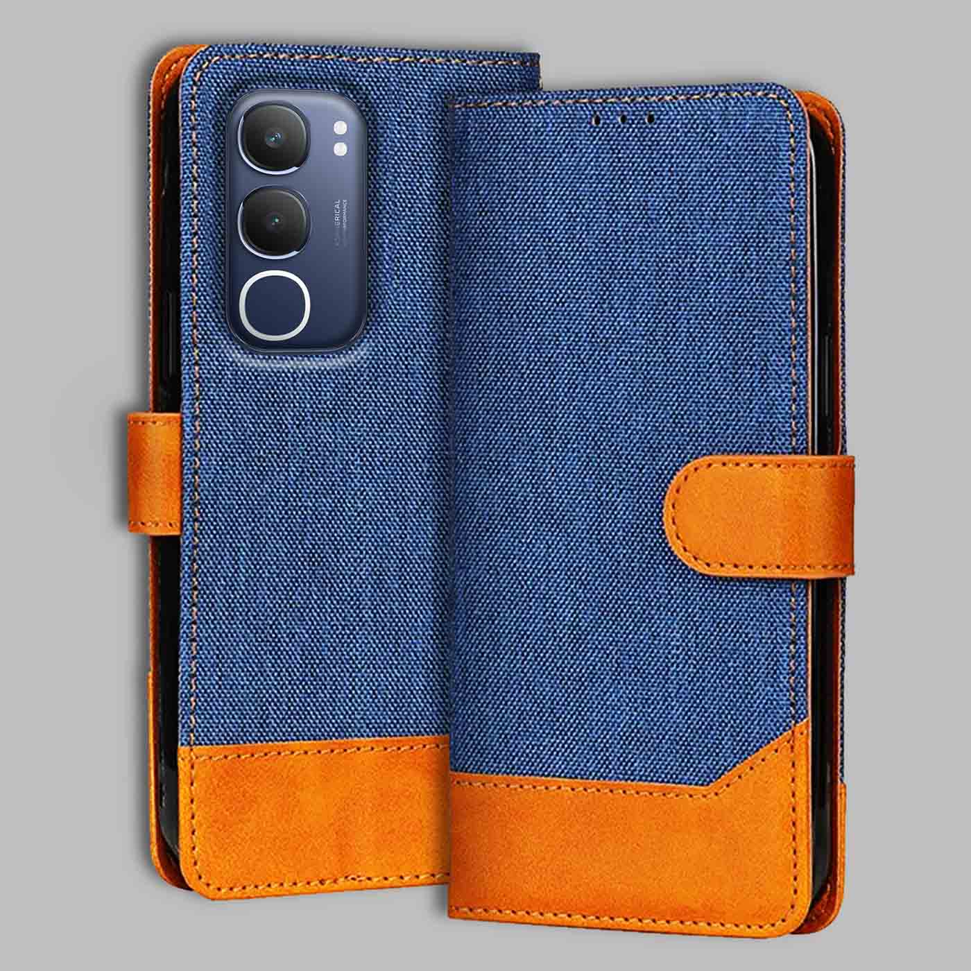 Vivo Y29 5G Denim Leather Flip Cover | Dual Color | Sleek & Durable - Blue