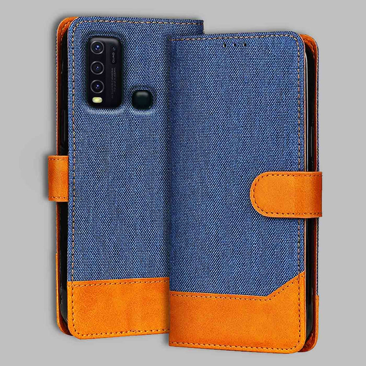 Upgrade your Vivo Y30 with this stylish & durable denim and vegan leather flip cover!