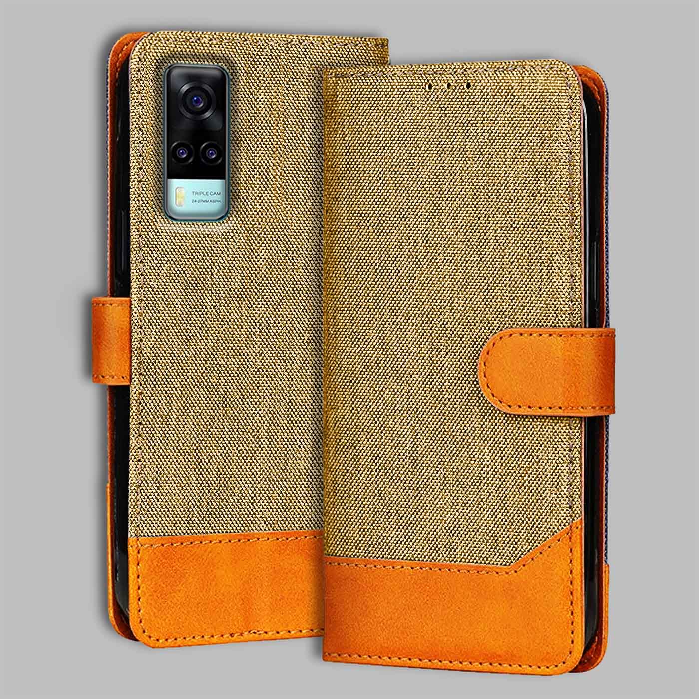 Vivo Y31 4G Dual Color Flip Cover | Denim & Leather - Light Brown