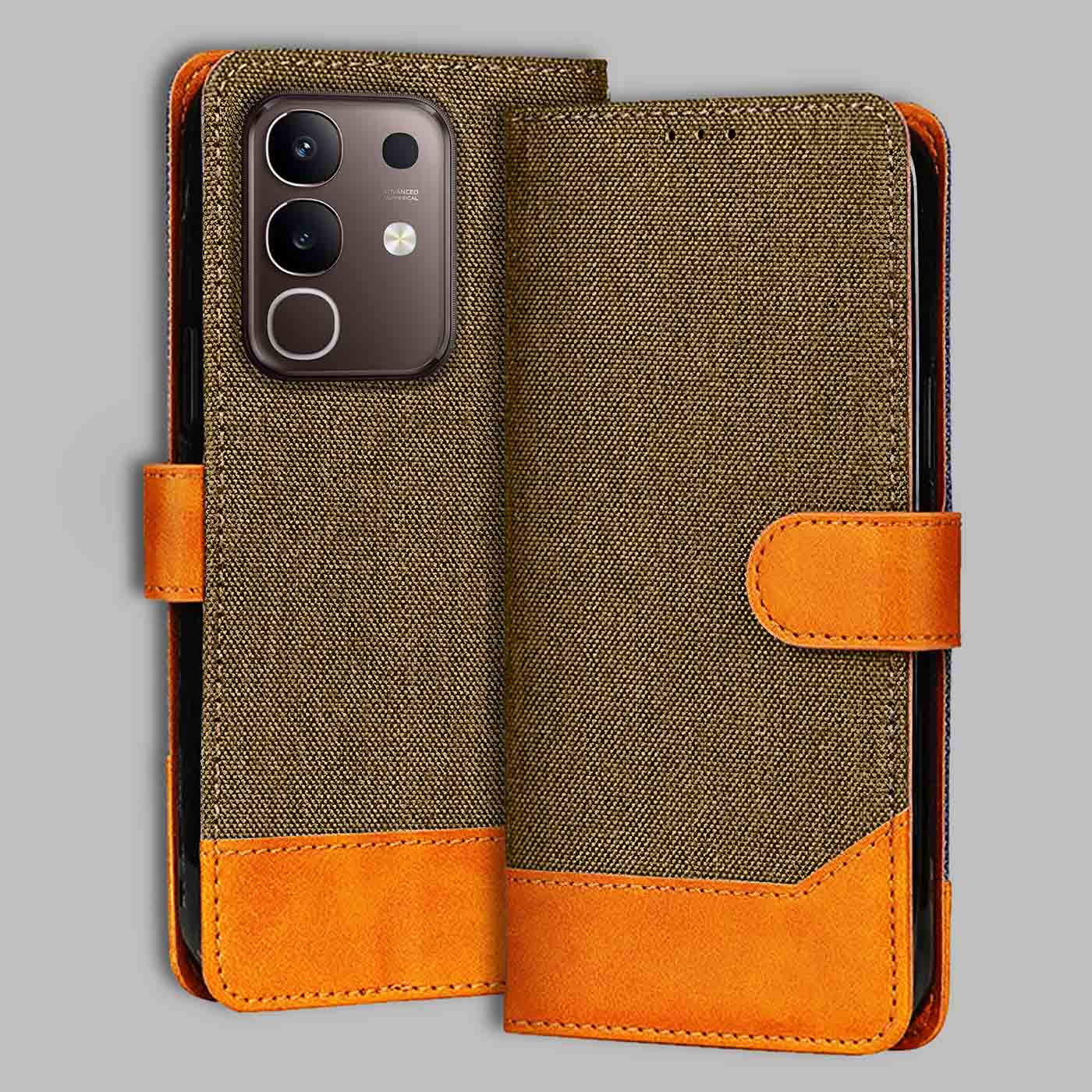 Vivo Y31 Pro 5G Dual Color Flip Cover | Denim & Leather - Dark Brown