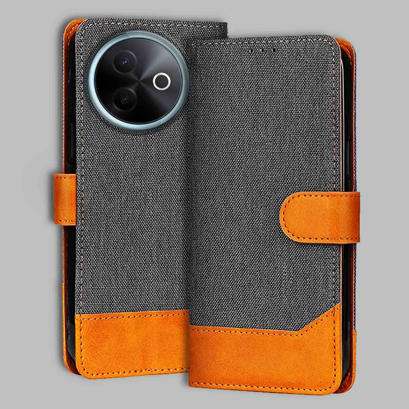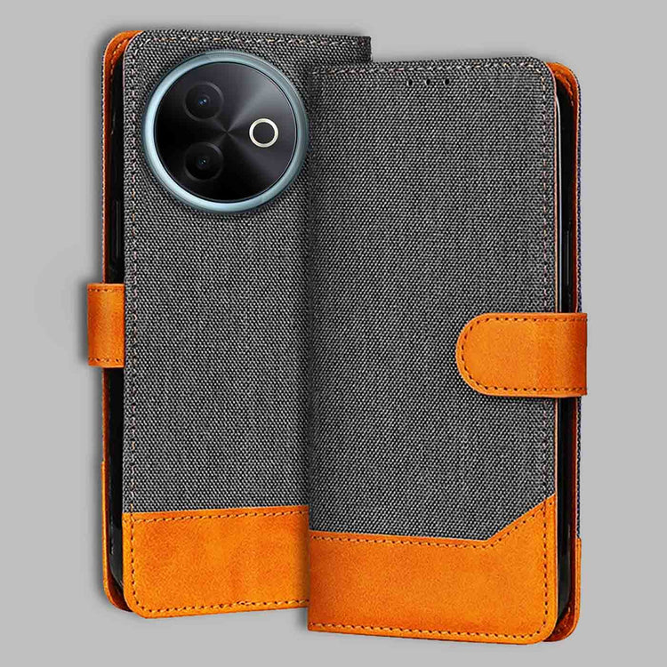 Vivo Y39 5G Dual Color Flip Cover | Denim & Leather - Grey