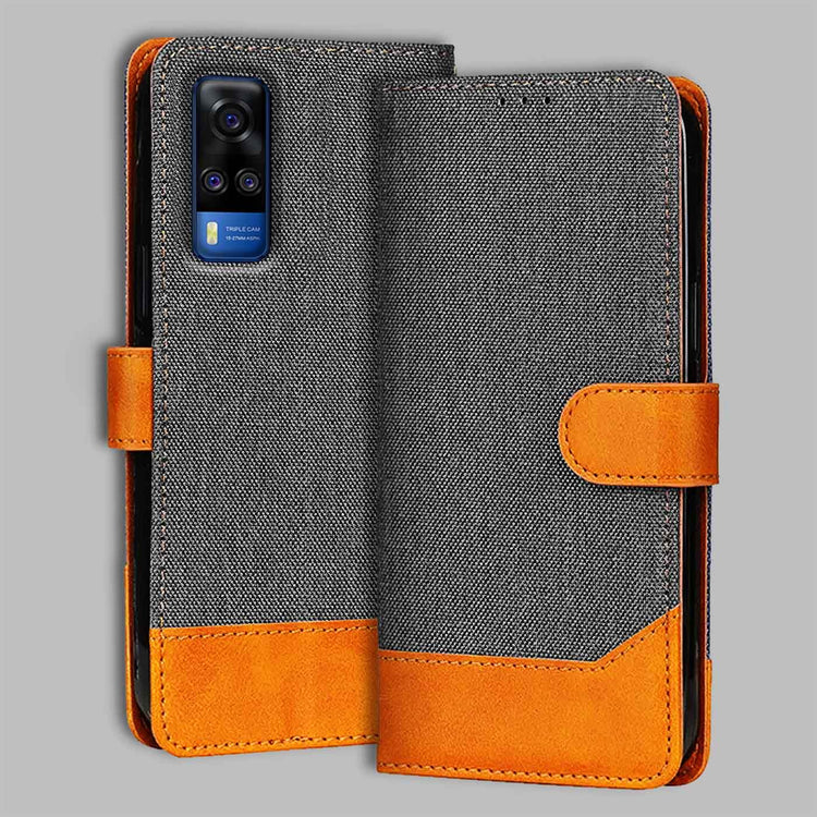 Vivo Y51 2020 Denim Leather Flip Cover | Dual Color | Sleek & Durable - Grey