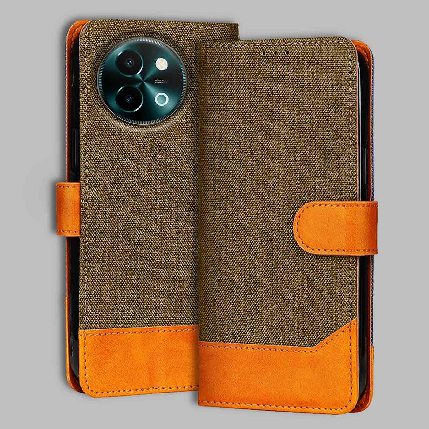 Vivo Y58 5G Dual Color Flip Cover | Denim & Leather - Dark Brown