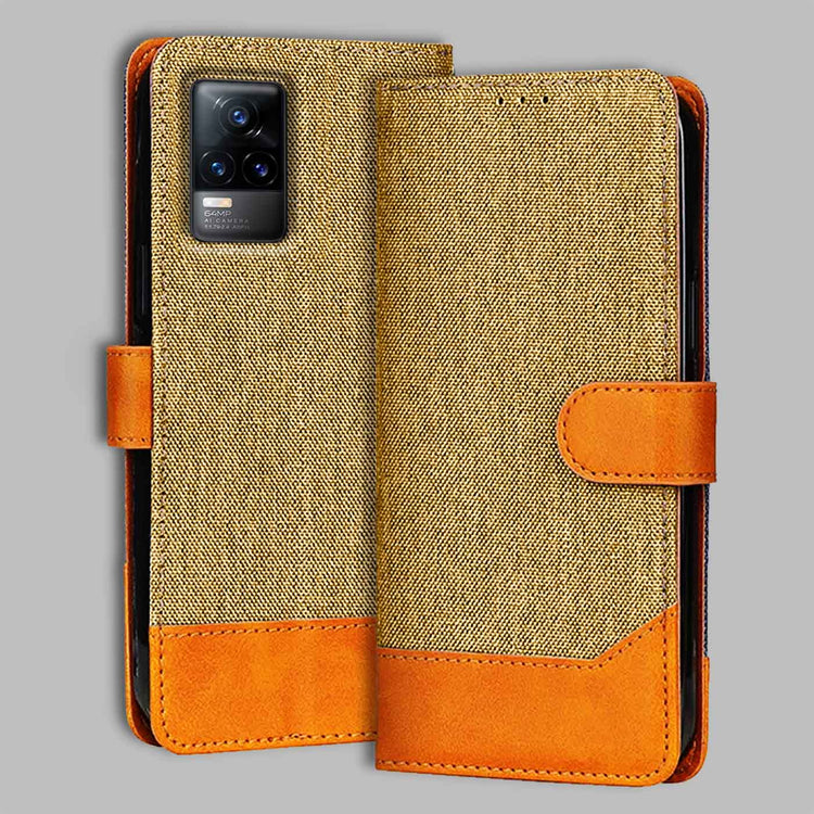 Vivo Y73 5G Dual Color Flip Cover | Denim & Leather - Light Brown