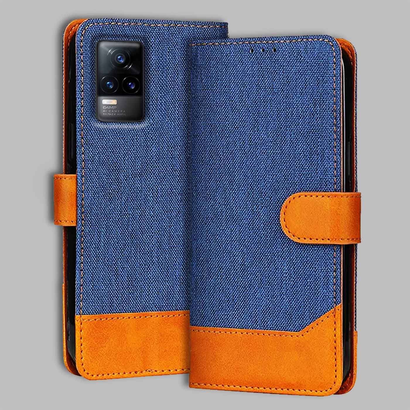 Upgrade your Vivo Y73 5G with this stylish & durable denim and vegan leather flip cover!
