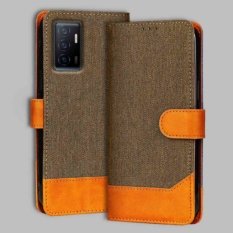 Vivo Y75 4G Dual Color Flip Cover | Denim & Leather - Dark Brown