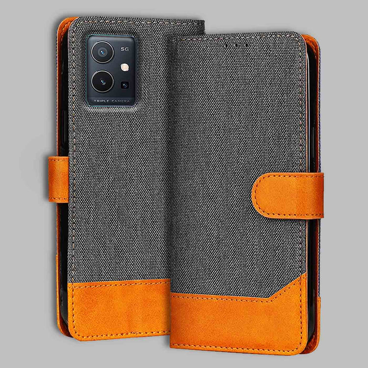 Vivo Y75 5G Denim Leather Flip Cover | Dual Color | Sleek & Durable - Grey