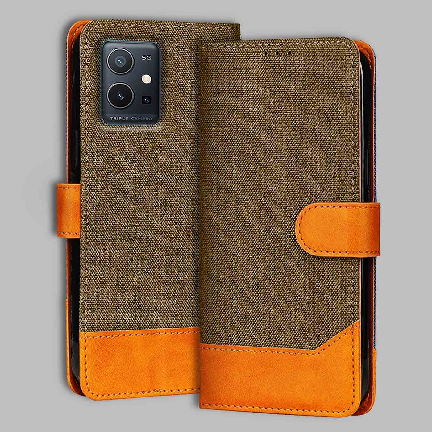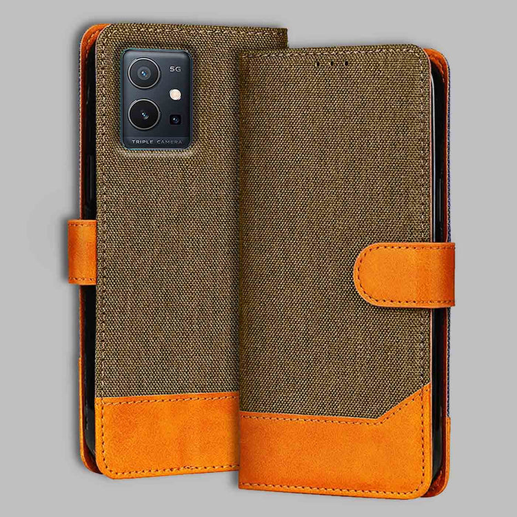 Vivo Y75 5G Dual Color Flip Cover | Denim & Leather - Dark Brown